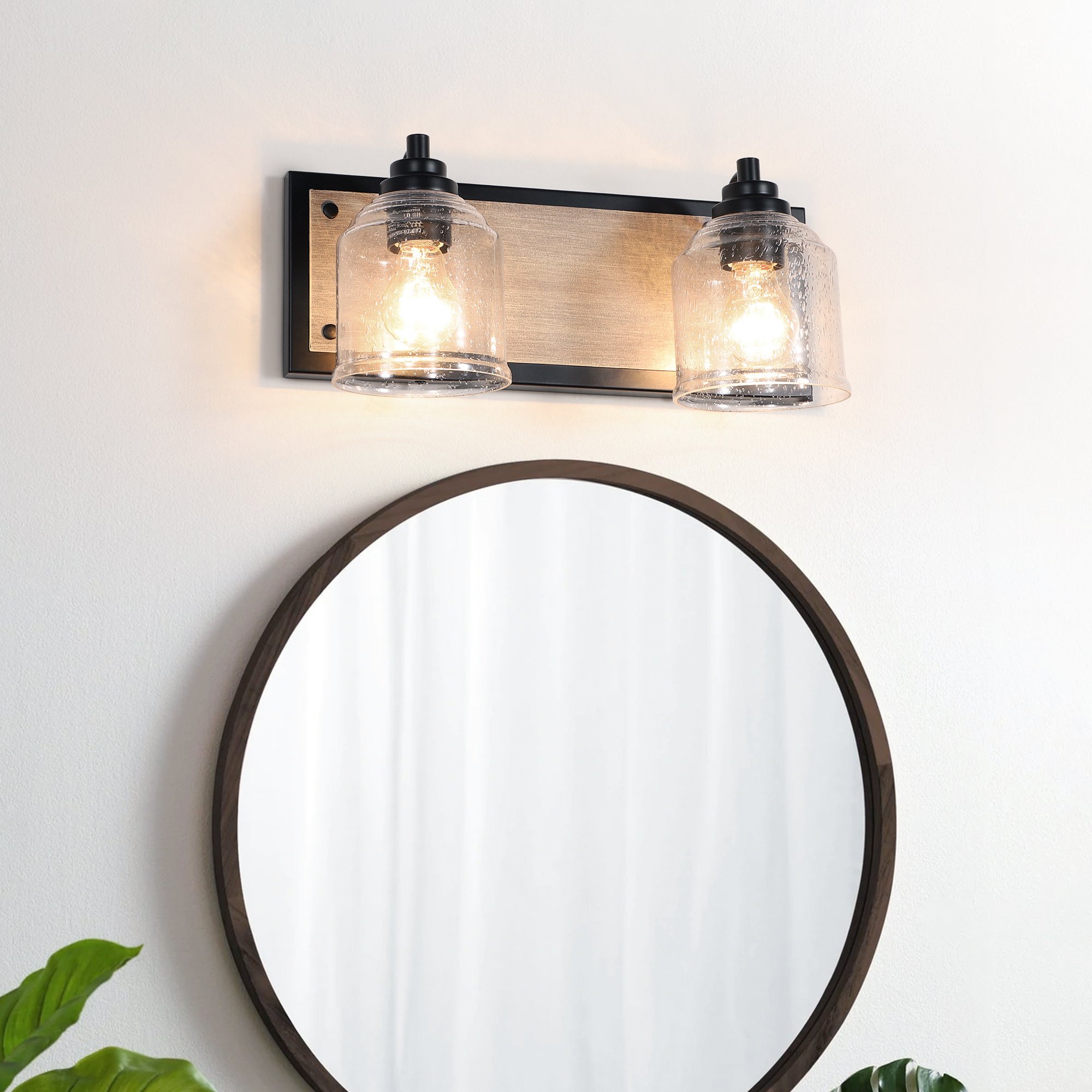 1.This Vanity Wall Sconce Lighting is made of metal construction and seeded glass shade. Antique Wood grain finish design strike a perfect balance between vintage farmhouse and modern industrial. Ideal for a variety of home decor.
