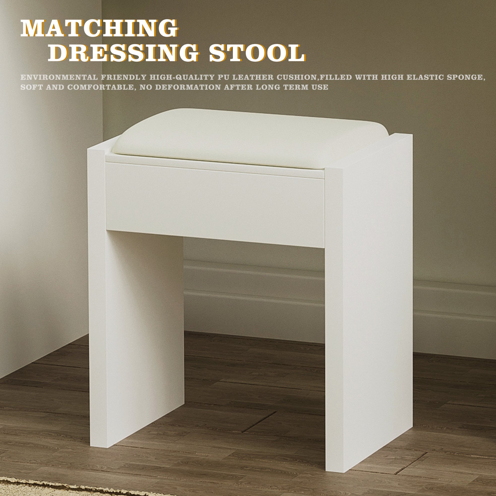 High-quality material: This dresser table is made of 15mm thick high-density board to ensure the stability and durability of the table.