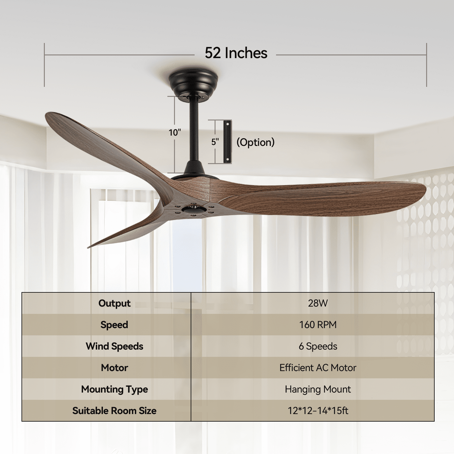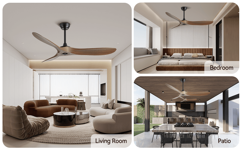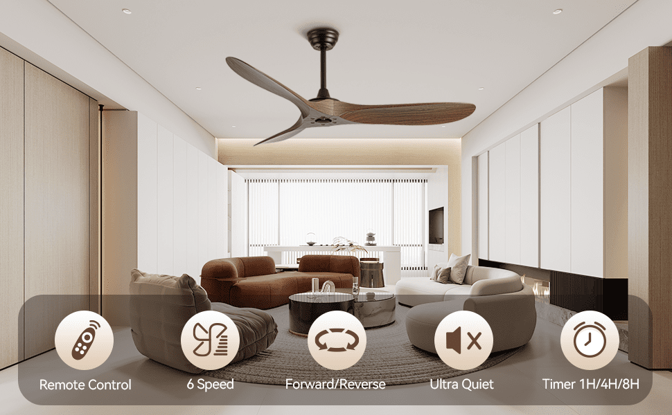 [Reversible Brushless Motor]: This fan's brushless motor is reversible, allowing it to push cool air down in the summer and circulate warm air from the ceiling in the winter. This feature helps maintain a comfortable temperature and improves airflow throughout your space.