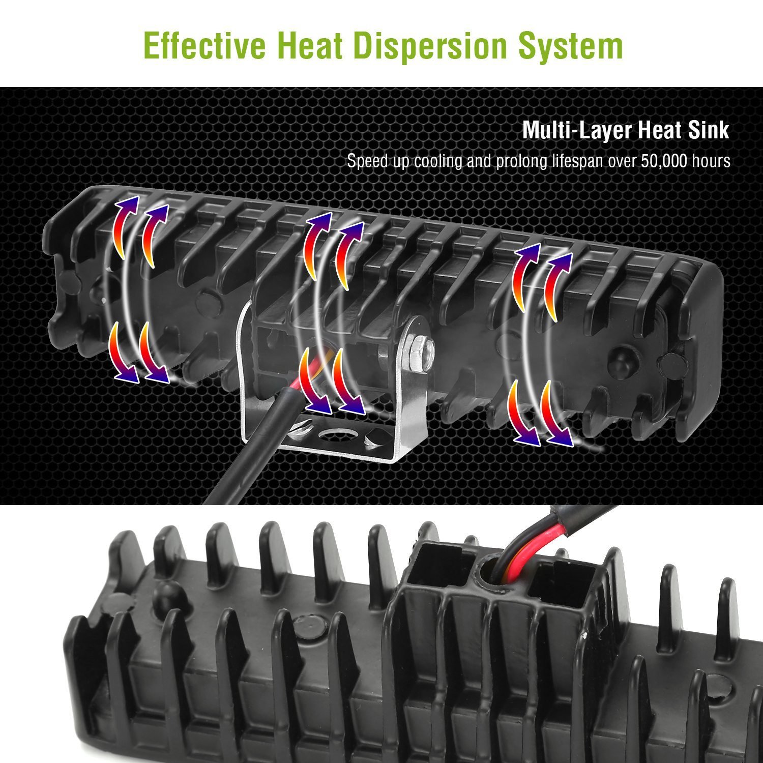 **Long Lifetime*:Coming with an eco-friendly external heat-sink design,our LED light bar has low power consumption,which allows it to work approx. 50,000 hours.