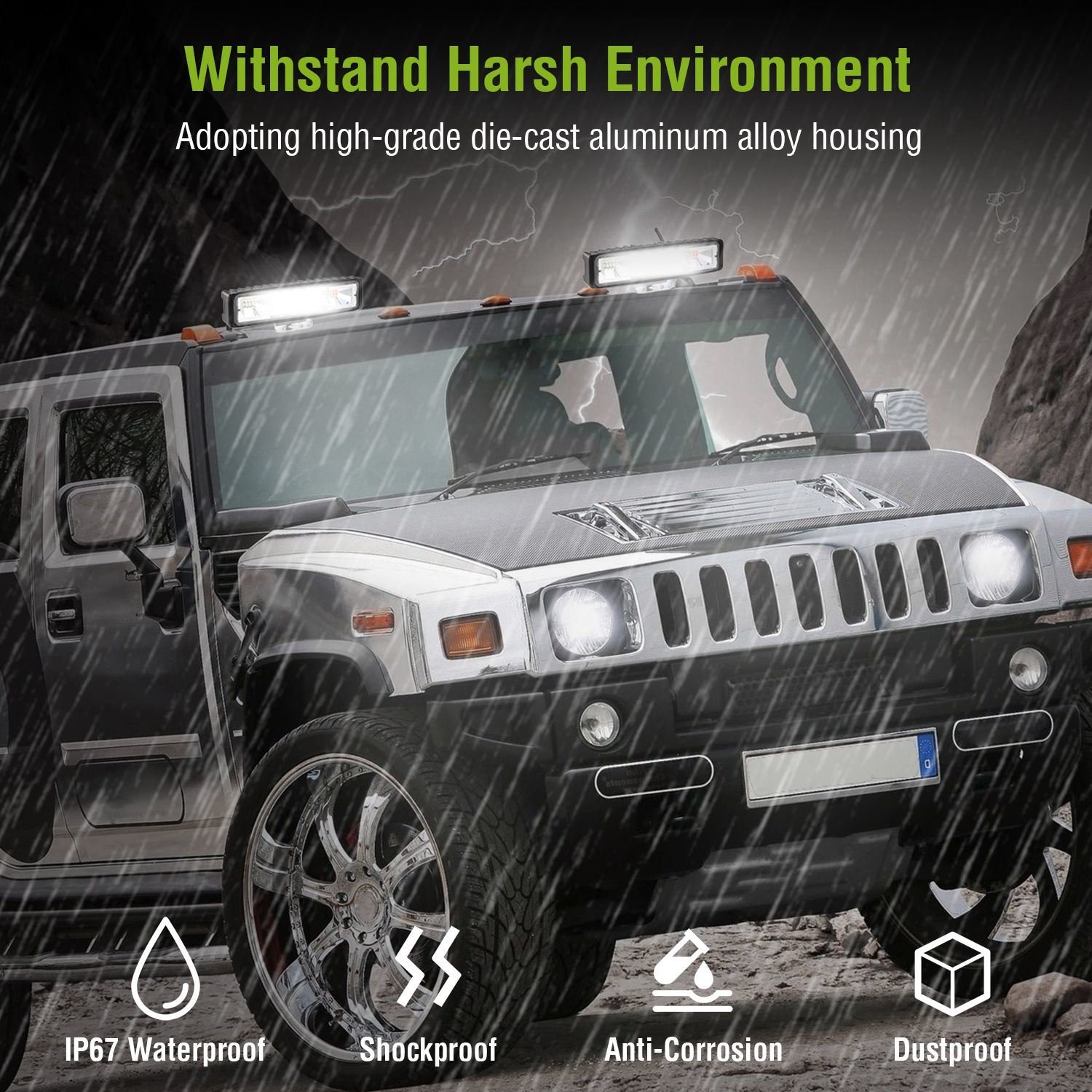 **STURDY AND DURABLE*:Adopting high-grade aluminum alloy materials with die-casting process,our LED light bar is compact,shockproof,anti-corrosion and IP67 waterproof to work well even in bad weather conditions.