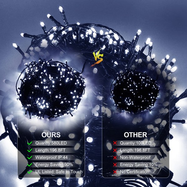 UL588 Listed: fairy lights come with UL588 Listed 29V low voltage power plug. Stay cool Christmas fairy lights are safe to touch. You can use or touch them outdoor and indoors safely. More safe and Less power consumption.