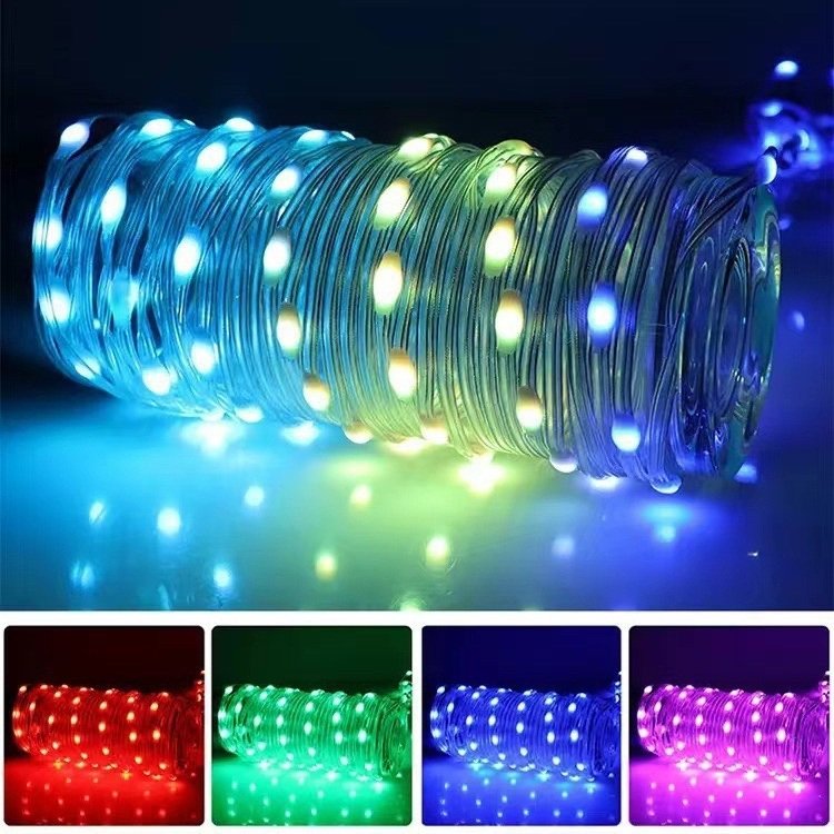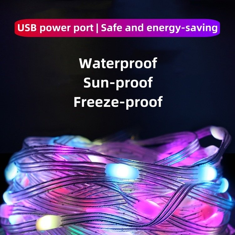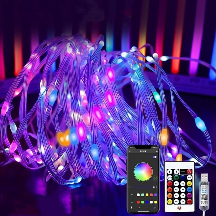 Smart App and Remote Control: Seamlessly manage light strings for decoration indoor through the app. 33ft length 100 LED fairy string lights can change into 22 colors, you can choose the color to go with your party theme, such as orange and purple for Halloween, red and white,red and green or multicolor for Christmas, pastel for Easter, red for Valentine, green for St Patrick's Day, etc. Ideal decoration for holiday lights, bedroom, garden, living room, party. Customizable DIY modes: These orange and purple fairy lights indoor can be DIY, folded into different shapes according to your needs, and can be easily wrapped around garlands, railings, and other places. Dual Control Mode: Bluetooth Mesh Control: Easily manage rgb christmas tree lights outdoor using the Bluetooth app. IR Remote Control: Equipped with a 24-key infrared remote control for precise adjustments. Easily switch between modes. USB Powered Fairy Lights: USB plug is suitable for power bank, car charging, adapters, notebook computers, USB hubs, etc. Easy to use and carry, you can light up these LED fairy lights colorful anywhere. Please note that the USB adapters are not included. Widely Use: These hallowen lights indoor are suitable for indoor, bedroom, Christmas tree, and other places.Halloween string lights outdoor are also suitable for outdoor use, courtyards, sheds, corridors and other places. Please pay attention to the waterproof protection of the USB connector when using it outdoors.