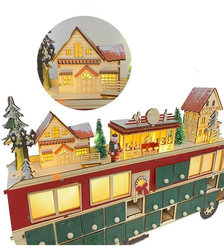 Home > Creative Holy Led Christmas 24 Countdown Calendar Wooden Bus Scene Home Atmosphere Ornaments