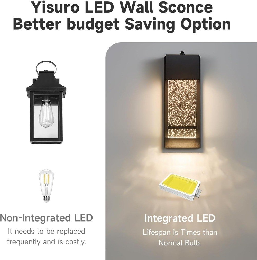 • [Stunning Crystal Bubble Glass Design]Yisuro exterior wall light is designed with unique crystal bubble glass which creating a brilliant and peaceful glow. The matte black metal frame adds a touch of elegance to any outdoor space.