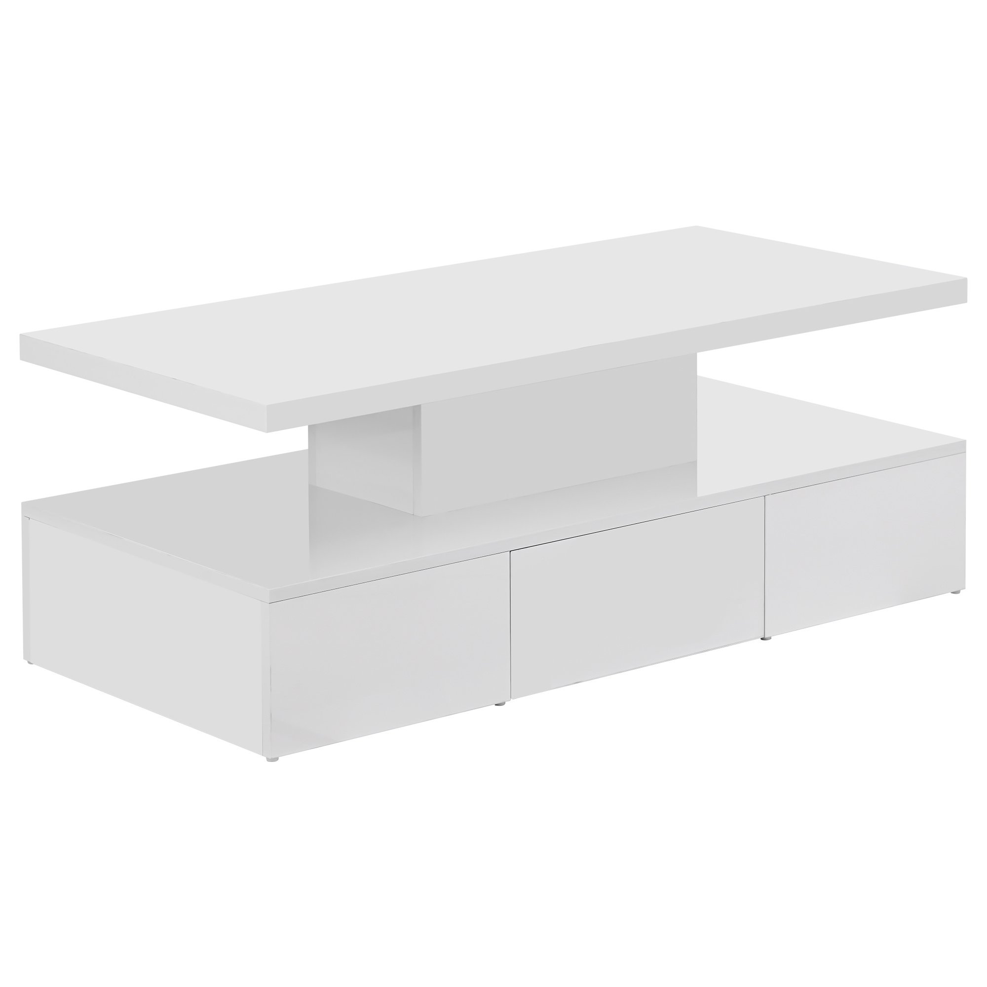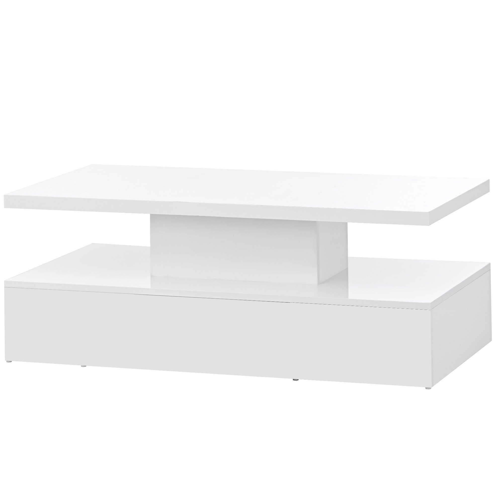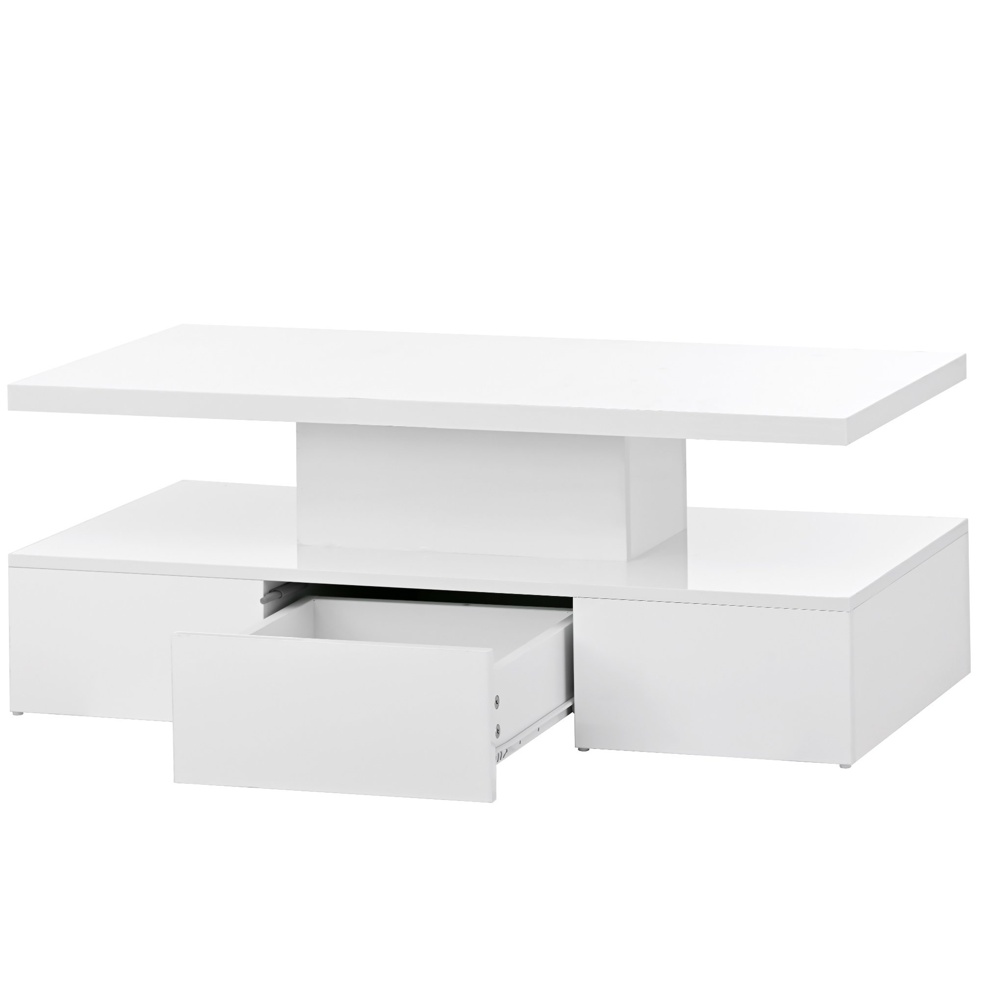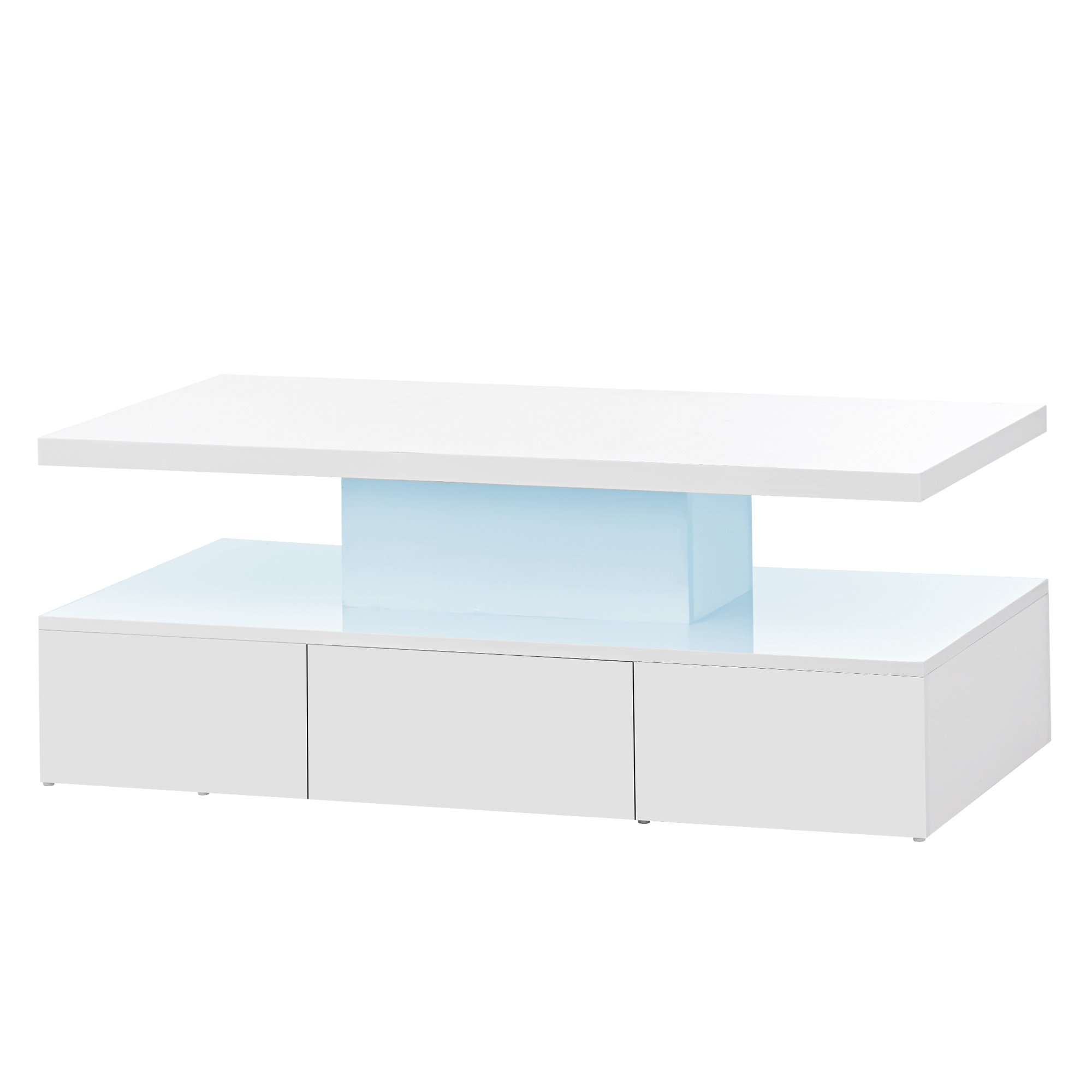 Home > ON-TREND Modern Glossy Coffee Table With Drawer, 2-Tier Rectangle Center Table with LED lighting for Living room, 39.3''x19.6''x15.3'', White