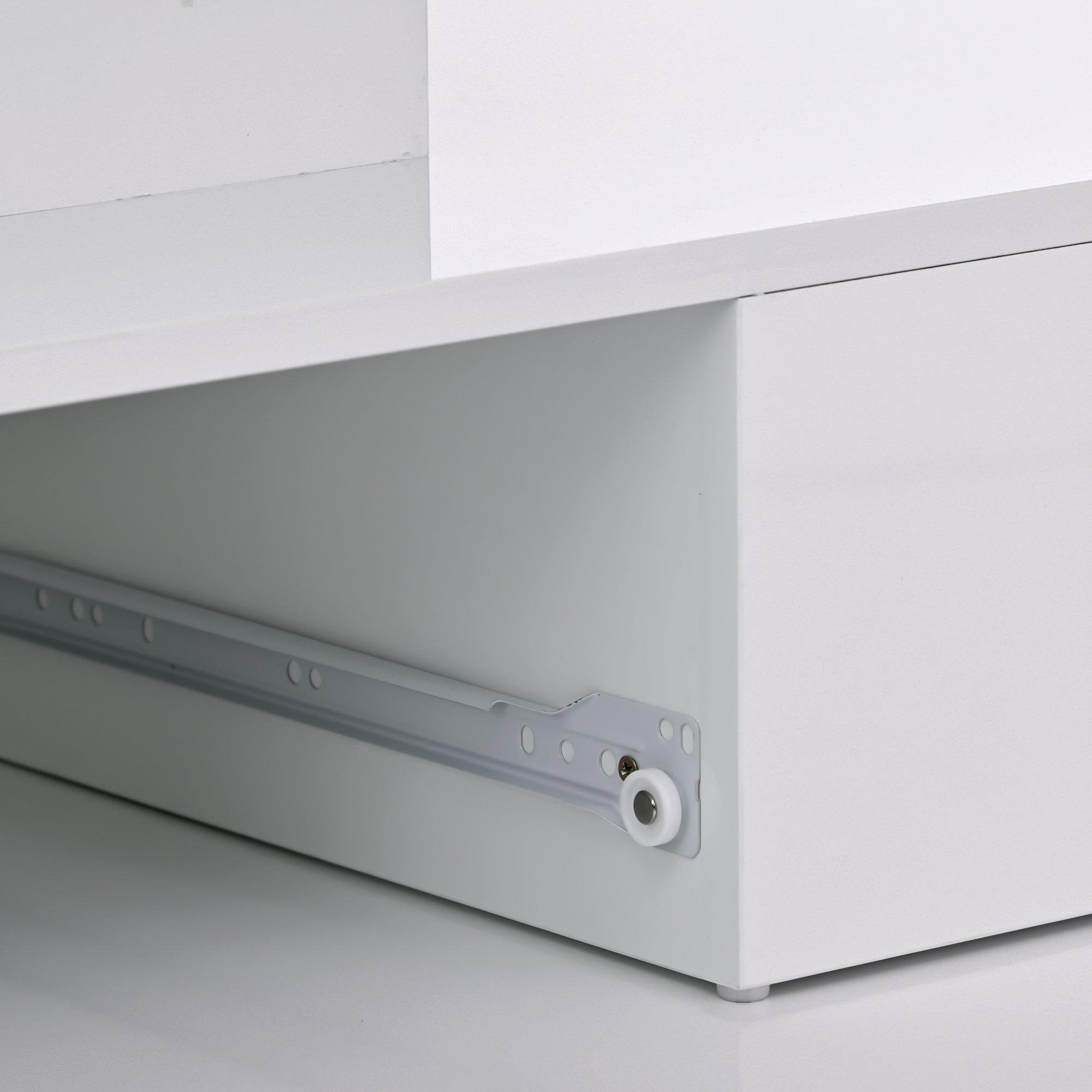 Product TypeCoffee TableTop ShapeRectangleTop ColorWhiteTop MaterialParticle boardTop Finish ApplicationVeneerBase ColorWhiteBase MaterialParticle boardBase Finish ApplicationVeneerBuilt-In LightingYesWeight Capacity143lbsDrawers IncludedYesCountry of OriginChinaTable Top Thickness1.18inchClearance - Floor to Bottom0inch