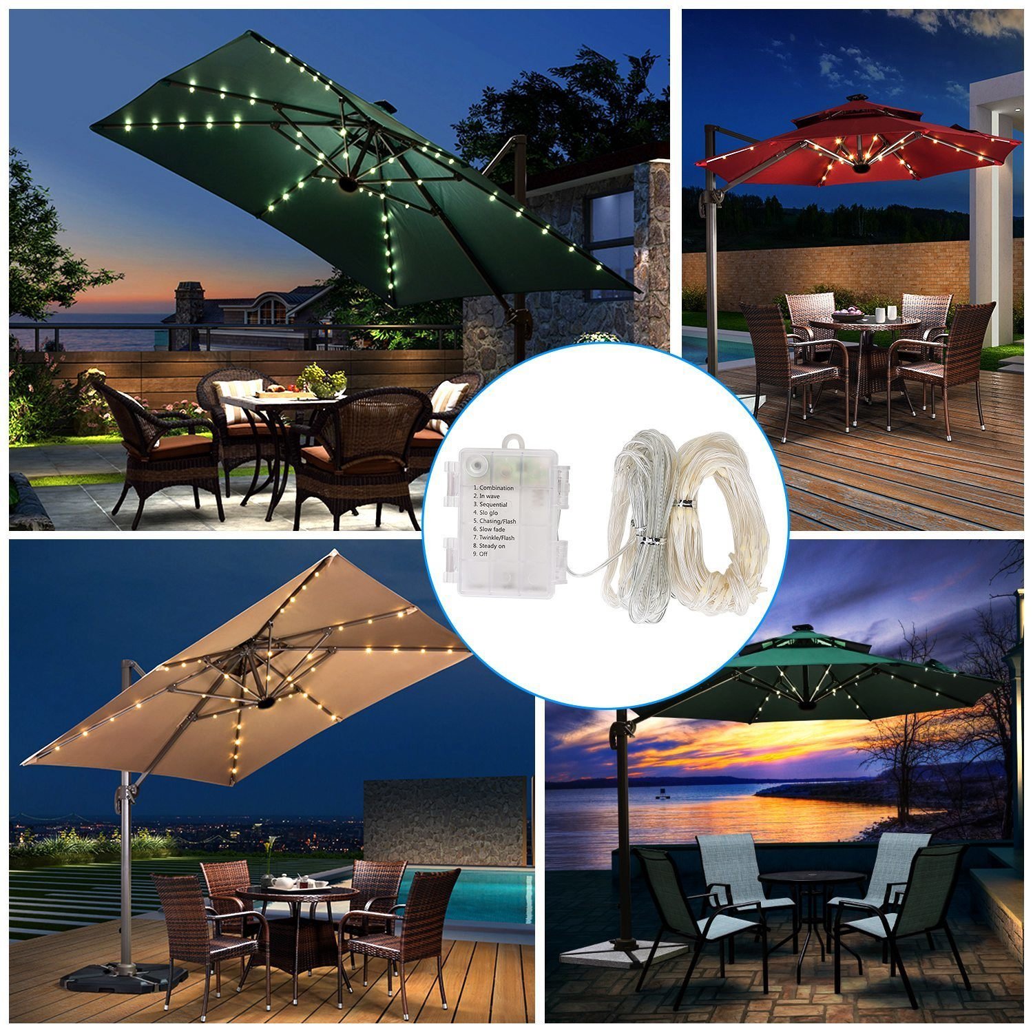 *8 Brightness Modes*:Gorgeous lighting modes including combination; wave; sequential; fading slowly; slow-glow; chasing; twinkle and steady on. Suitable for decorating umbrella or tents with 8 ribs. Ideal for decorating your patio; garden; deck; backyard; pool; gate; yard; party etc; also can be used as decorative string lights for cafe; bar; Christmas tree and other places.(Note:Umbrella not included)