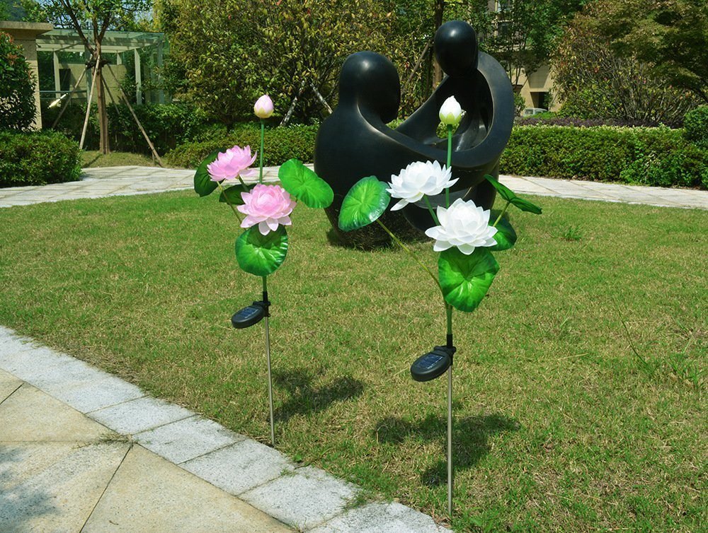GARDEN LOTUS SOLAR LIGHT: 2-Pack beautiful artificial flower garden stake lights(Include yellow and white tulip lights). The flowers are exquisitely designed to imitate real tulip flower. It will be a perfect decoration solution for your garden.