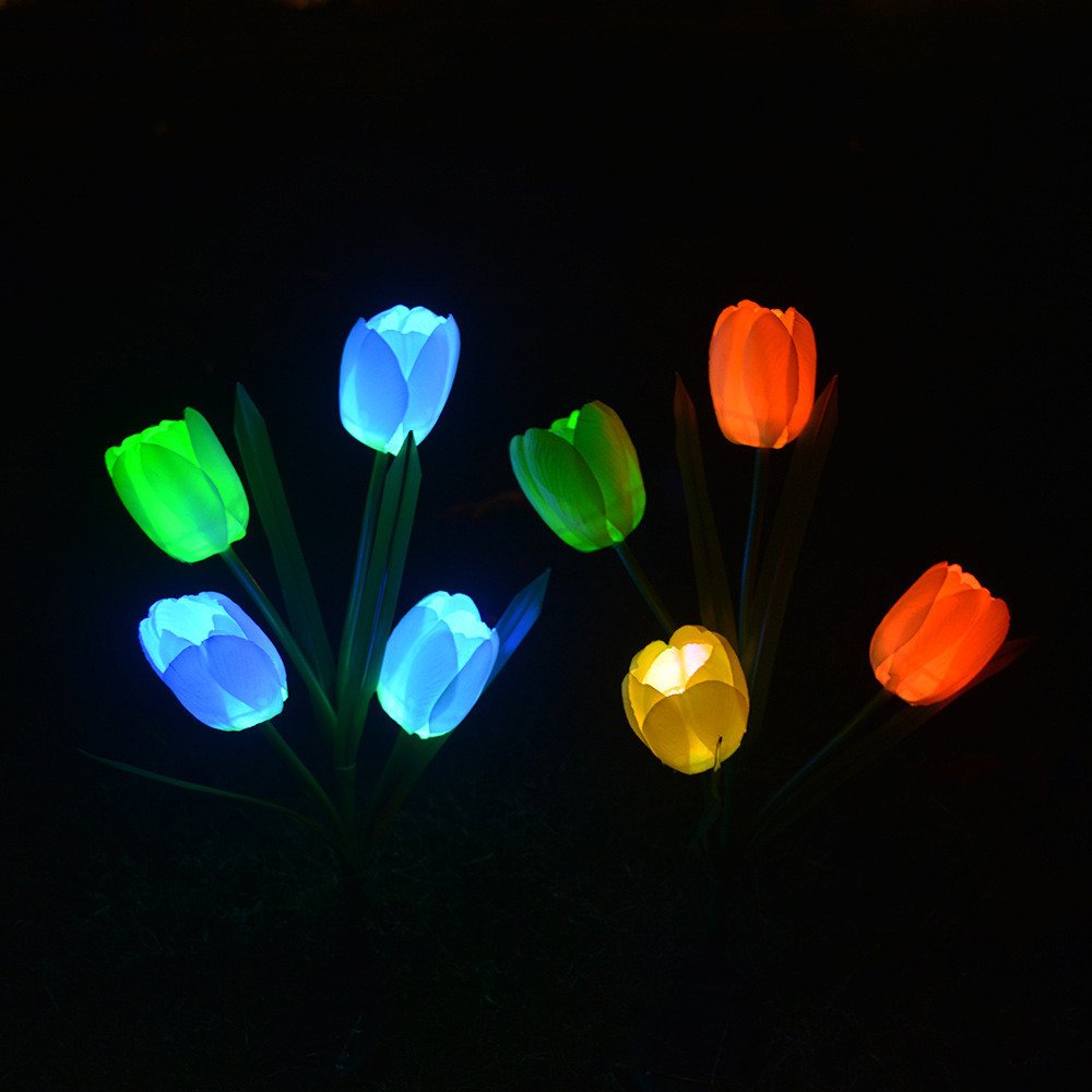 7 COLOR CHANGING: These 7 color-changing tulip lights automatically lights up in the dark, are perfect as path lights and in-ground lights, suitable for the garden, flowerbed, fence, walkway, this solar garden lights Does it all.