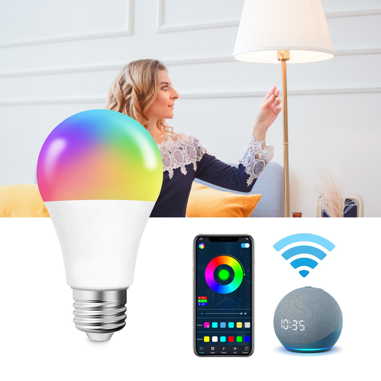 Home > Smart Light Bulbs, Full Color Changing Dimmable Smart WiFi Bulbs Compatible with Alexa and Google Home, A19, 60 W 800 Lumens,2.4Ghz only