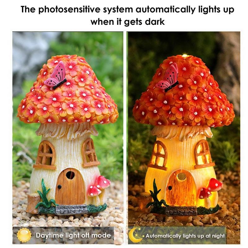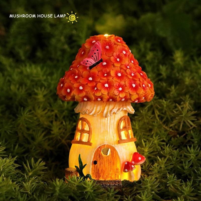 Solar Mushroom Lights Cute Resin Mushroom House Fairy Lights Garden Decoration Resin Crafts Outdoor Yard Patio Lawn Decor