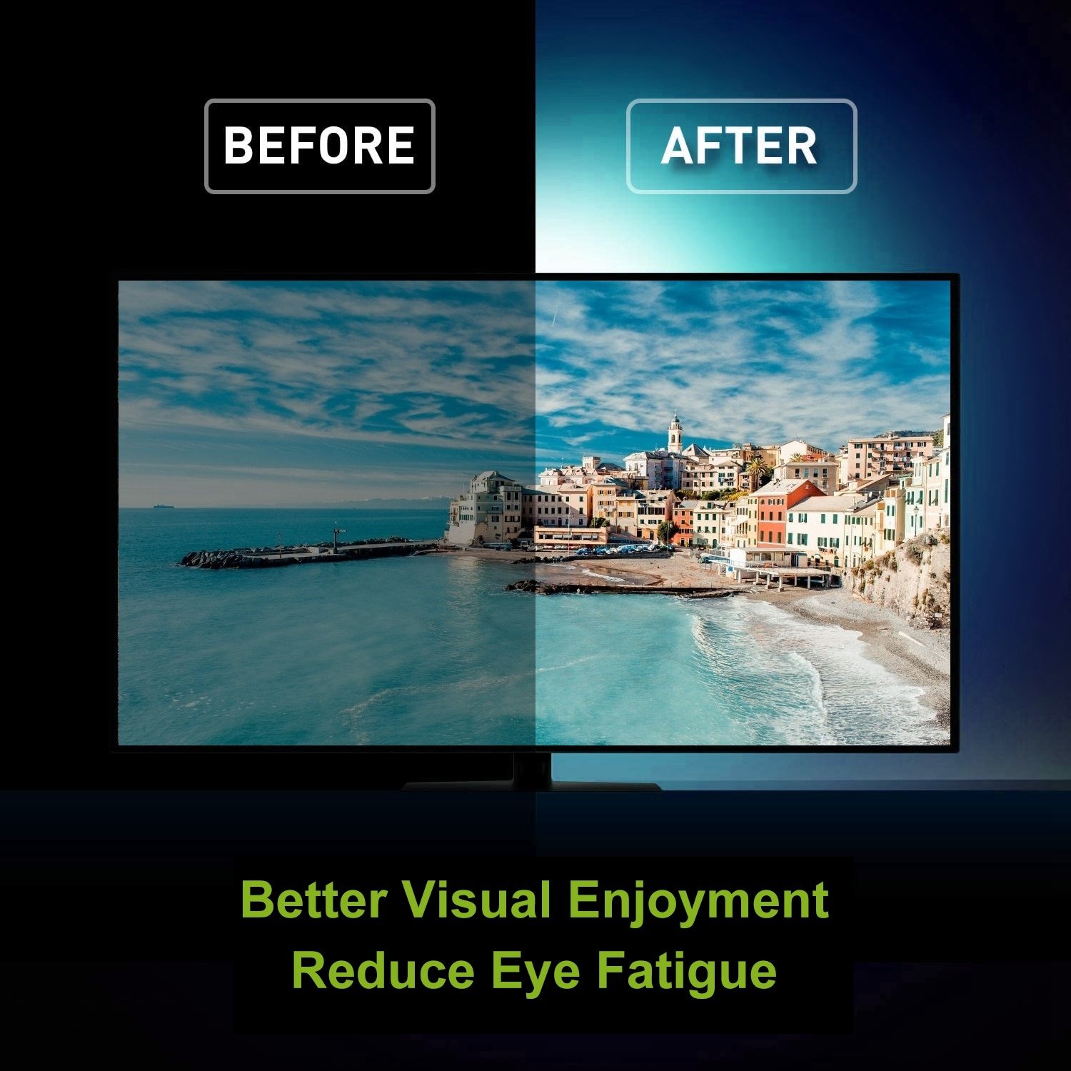 *Protect Your Eyes*:Watching TV in the dark will cause the eyes to constantly adapt to a bright screen and dark surrounding area,which will do harm to the eyes. While TV backlight can elevate the ambient light,reducing eye strain and headaches to protect your eyes.
