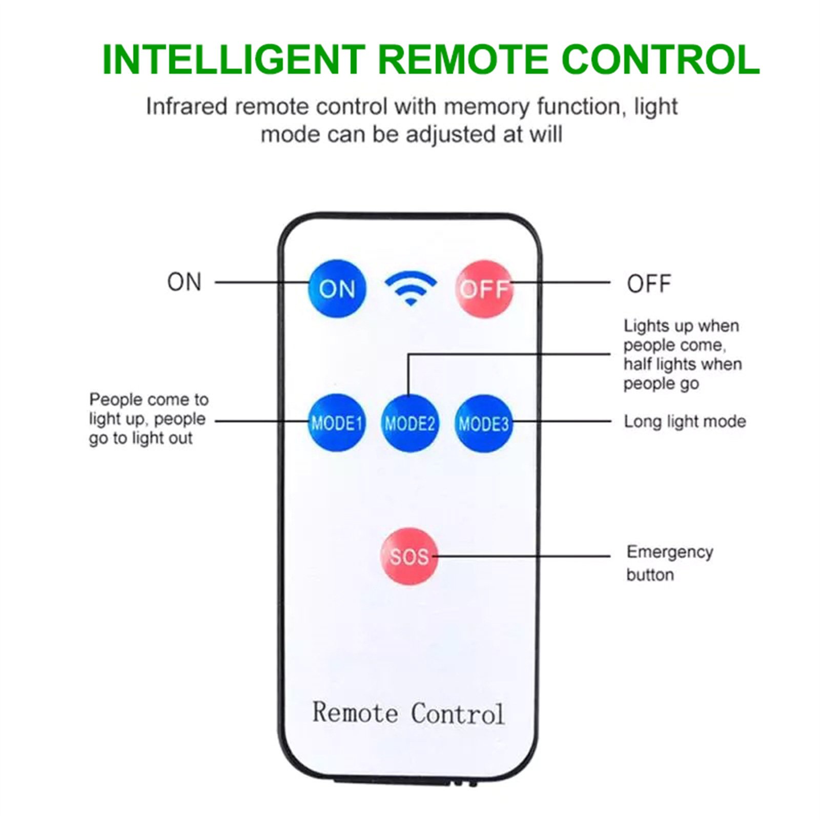 - Mode 2: Human Body Sensing Mode + Low Light Mode. The lights are high and bright as people pass by. 20 seconds after people leave, the lights dim